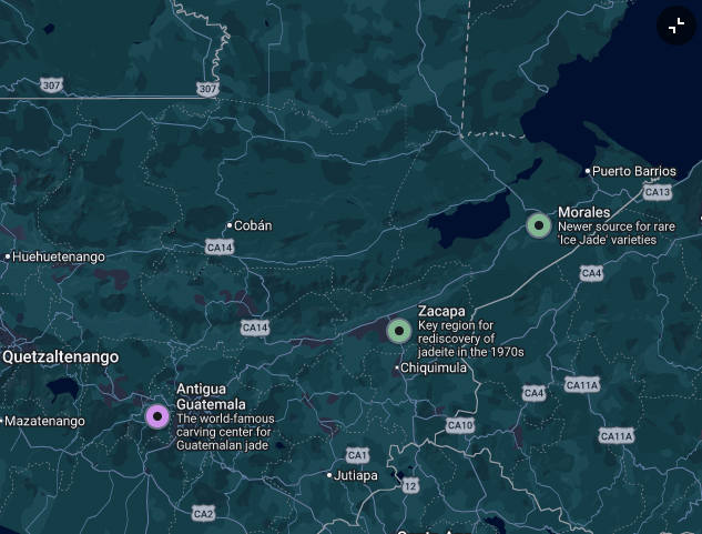 A unique “tell” for Guatemalan material is the presence of Albeit inclusions, or Pyrite (Fool’s Gold) and Magnetite. Because of the high iron and sulfide content in the Motagua Valley, many varieties of Guatemalan jadeite—especially the “Black Galactic” and deep “Olmec Blue“—contain tiny, visible metallic flecks. These look like shimmering gold or silver dust trapped within the stone. This is a crucial identifier because Burmese (Myanmar) Jadeite rarely, if ever, contains pyrite. If you see golden sparkles in a high-density green or black stone, it is a very high-probability indicator of Guatemalan origin. Additionally, many black jadeite specimens from Myanmarr are actually a deep, saturated green that only reveals itself as a vibrant “emerald” hue when sliced extremely thin (less than 2mm) or held against a high-lumen (1000+) LED light source. Guatemala is one of the only sources of a “true black” jadeite due to graphite inclusions and it’s high iron content.