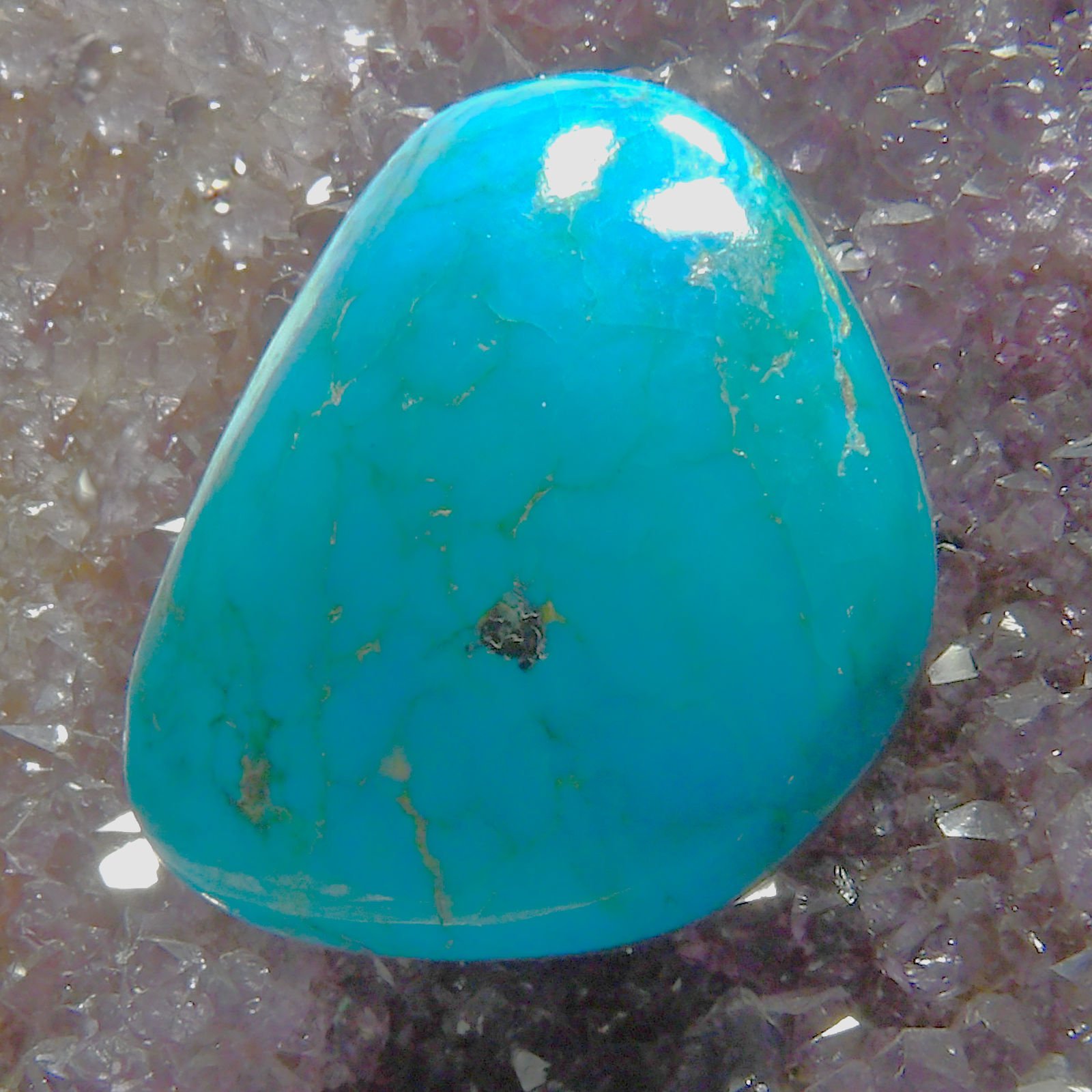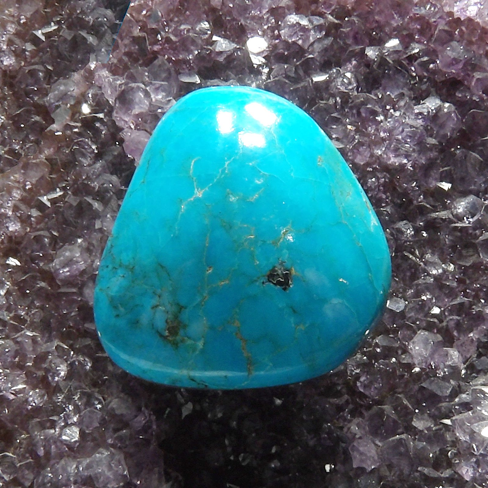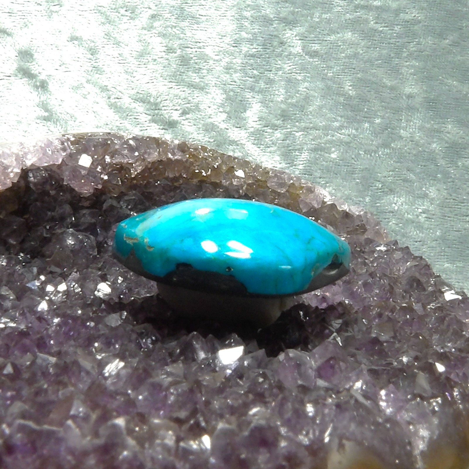 Our Kingman Turquoise cabochon ethically sourced from Kingman, Arizona and was handcrafted here in our shop in Ohio. This stone has been stabilized and backed to ensure a long lasting life in whatever piece of jewelry it is placed in.