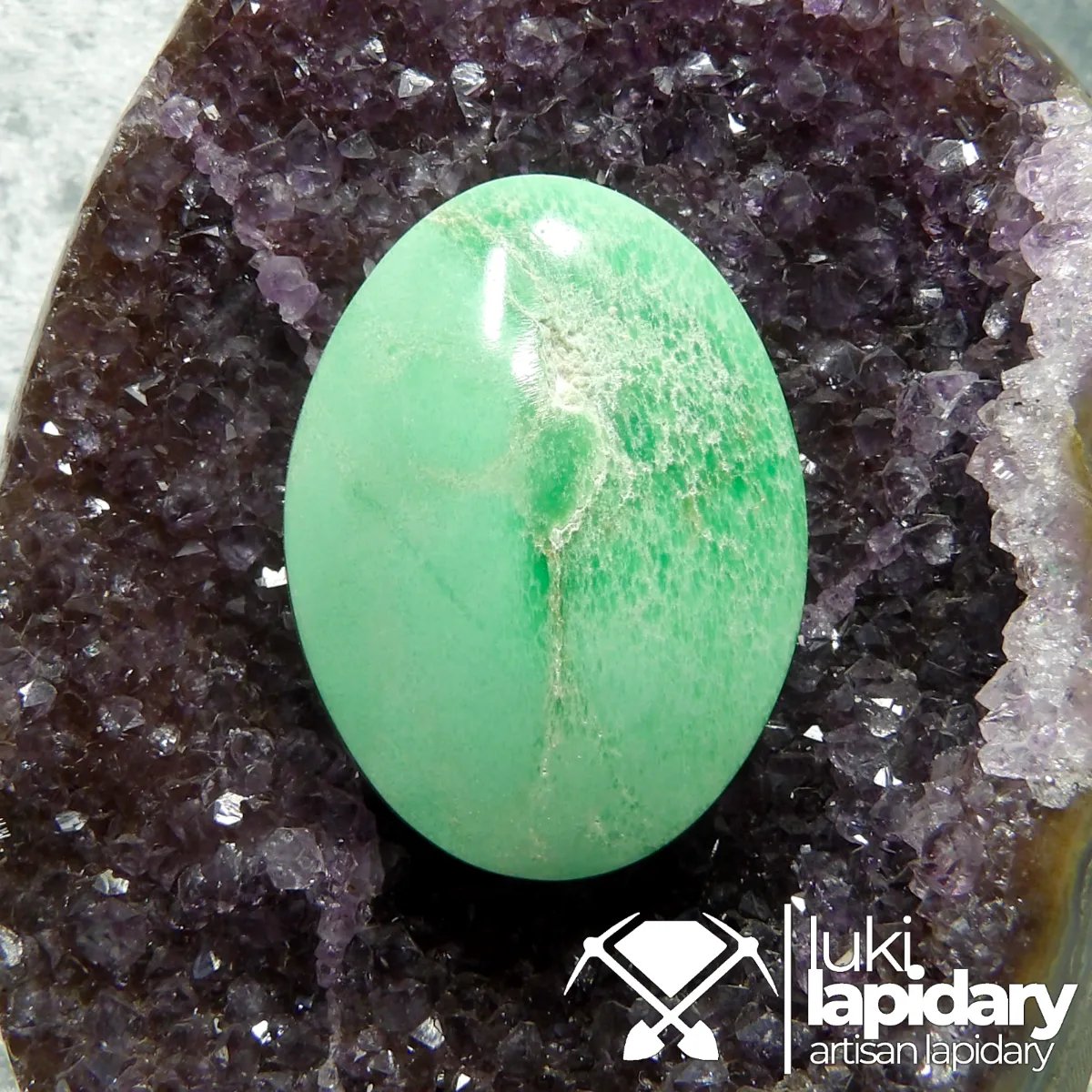 This Lucin Variscite cabochon, also known as Utah Variscite, is one of the most mined and sought-after varieties of variscite worldwide. Miners primarily extract this stunning green gemstone from Lucin Hill, located near Lucin, Utah. Notably, this area is renowned for producing high-quality Lucin Variscite cabochons and specimens. This region is famous for its vibrant green colors, which make Lucin Variscite highly prized by both collectors and jewelers alike.